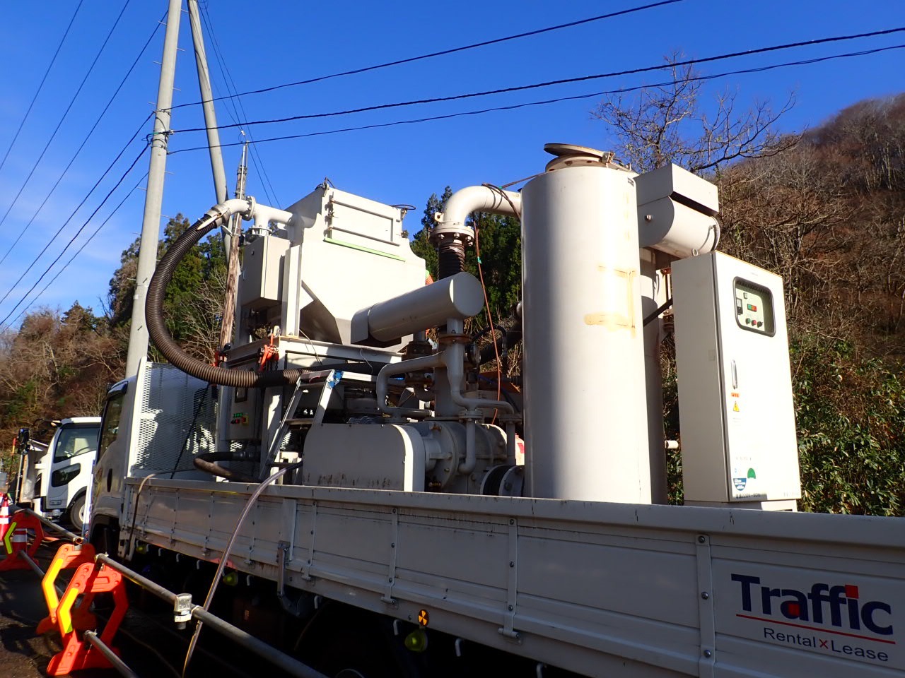 現在、車載式循環ブラストにてブラスト作業を行っています。