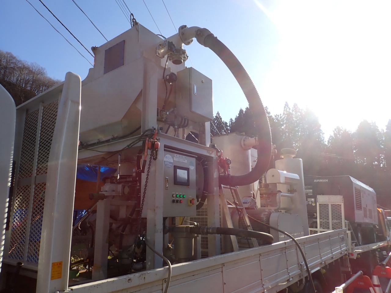 現在、車載式循環ブラストにてブラスト作業を行っています。